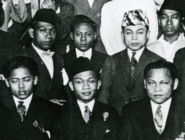 Slamet Faiman is linksonder, naast hem ziet u Hatta.