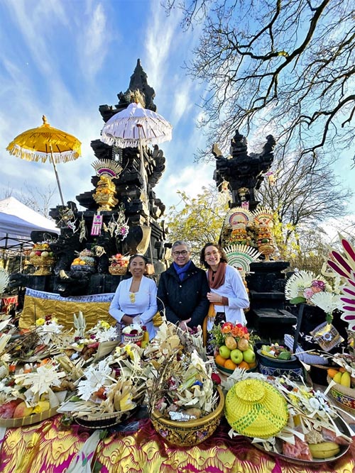 Een zegen van de priester die speciaal uit Bali is overgekomen. Dan een gezamenlijk gebed en vervolgens gaan vrouwen in koppels de rijen langs om de bezoekers te besprenkelen met ‘heilig water’. Met deze ‘reinigingsceremonie’ wordt de tempel in dierenpark Taman Indonesia, gemaakt op Bali, zaterdagmiddag ingewijd.