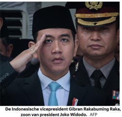 Gibran is de oudste zoon van de vorige, zeer populaire president Joko Widodo, die tien jaar lang aan de macht was.