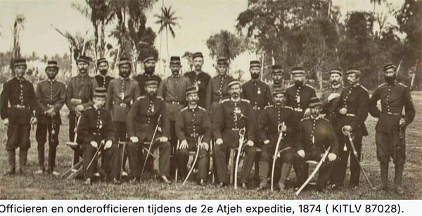 Dat verklaart die K in het woordje KNIL ! Iedereen maar denken dat die K staat voor Koninklijk .Nee beste luitjes die K staat voor Krankzinnig ! Dus voluit Het Krankzinnige Nederlands Indische Leger .Overigens waren de meeste KNIL slachtoffers in Atjeh helemaal geen Nederlanders .De meeste officieren waren van verschillende Europese landen en de manschappen van Javaanse en Molukse afkomst .Mijn opa van moederzijde kwam in 1890 aan in Indie na eerst in Zuid -Afrika gevochten te hebben tegen de Britten .Deze man heeft zowat zijn hele verdere leven geen hap Indonesisch eten gegeten , hij moest en zou elke dag aardappelen ,sperciebonen en een karbonaadje hebben .Ook een vorm van krankzinnigheid van deze KNIL onderofficier .