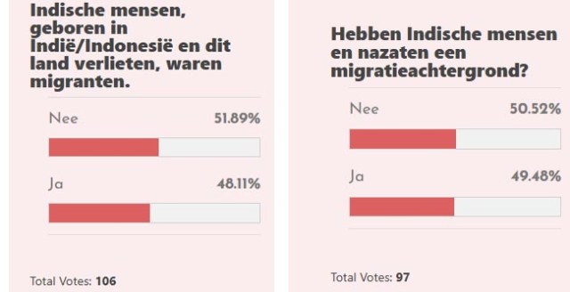 Toch staat dit haaks op 2 peilingen van december 2024, waar iets meer dan de helft van de deelnemers Indische Nederlander niet als migranten willen zien en zo benoemen.