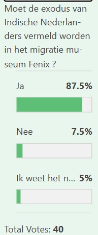 Van de 40 deelnemers waren er 35 die JA aankruisten op de vraag: “Moet de exodus van Indische Nederlanders vermeld worden in het migratie museum Fenix ?”