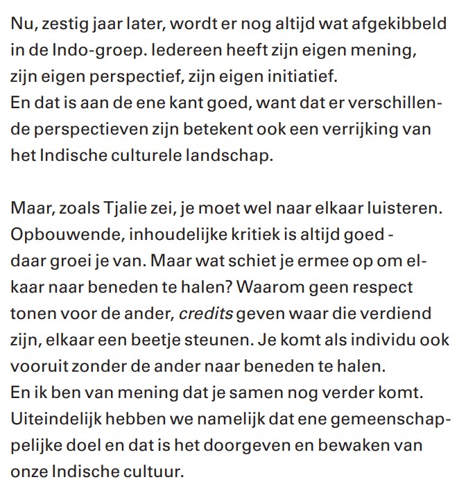 Moesson heeft deze maand het thema ‘perspectieven’ en die zijn er veel. Perspectieven die net zo divers zijn als de Indische gemeenschap zelf; perspectieven die elkaar aanvullen maar ook haaks op elkaar kunnen staan. En dat zorgt soms voor aardig wat vuurwerk. Lilian Ducelle, oud-hoofdredacteur van Moesson, zei altijd: ‘Zet twee Indo’s op een onbewoond eiland en je hebt binnen de kortste keren twee stichtingen.’ In onze oktobereditie komen verschillende perspectieven samen en vieren we die diversiteit, maar vragen we ons ook af waarom (en hoe) we niet wat vaker door één deur kunnen. Want naast verschillen hebben we ook veel met elkaar gemeen.