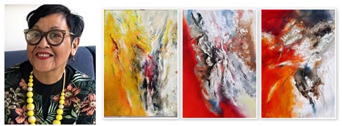 Het kan aan mij liggen maar ik begrijp niets van haar schilderijen, ze spreken mij miet aan als deze overpeinzingen moeten voorstellen over het gedwongen vertrek, identiteit en wortels.