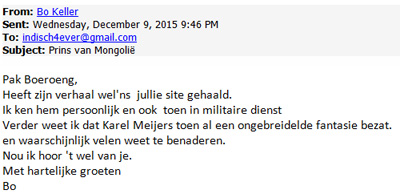 In 2016 mailde ik met Bo Keller over “de mongoolse prins”
