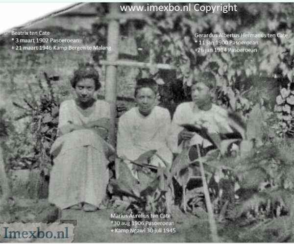 In verband met de herbegraving e.d. van oom Jus was zijn jongere zuster Gerardine Albertine ten Cate (1915-1990) de door de OGS aangewezen persoon om contact mee te hebben. Ik vraag me af waarom het de jongste zuster moest zijn, want er was in Nederland ook nog een andere oudere zuster woonachtig namelijk tante Ellen Ruth en in Soerabaja was er ook nog een andere zuster tante Odilia Nancy genaamd, waar opa Gerrit nota bene bij inwoonde na zijn verhuizing uit Pasoeroean en nadat oma Louisse was overleden en begraven werd in het familiegraf Meijer ten Cate.