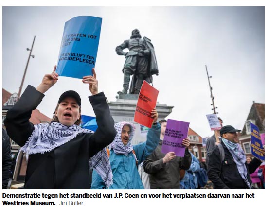 Zo’n twintig demonstranten kwamen af op het protest in het Noord-Hollandse Hoorn, waar Coen in 1587 ter wereld kwam. Het is de tweede demonstratie in een reeks van tien die voor dit jaar gepland staan.