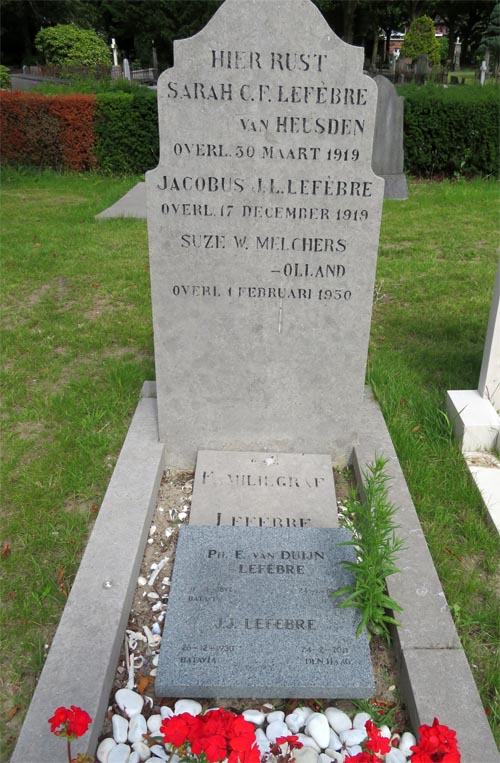 Josephine Eleonore Adriane Leontine Musch. Ze werd in 1944 ook in dit graf gelegd en was geboren in 1861 te Fort de Kock, Sumatra, dochter van Otto Hendrikus Musch (1821 Amsterdam- 1898 Soekaboemi), majoor infanterie, sinds 1848 in Indië en Leonarda Christina Weber (1836 Buitenzorg-)