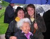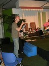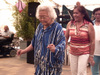 In de pauzes praat ze met iedereen om haar heen en zou eigenlijk mee willen doen met de oudjesdie voor het podium aan t dansen zijn.