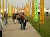 De rij voor de ingang op het Malieveld is lang en nat en niet eens onaangenaam.