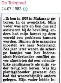 Beste, Hierbij wil ik een oproep doen aan de Indonesische gemeenschap in Delfzijl. Wij, mijn broer Hans en ik, Rudy Bosker, zoeken al jaren naar onze halfzus, dochter van onze vader Harm Bosker en een Indonesische geliefde. Deze dochter moet geboren zijn in of rond Delfzijl, en zal nu ca 65-70 jaar oud zijn. Onze vader werkte destijds op de Kabelfabriek, de NKF, en we woonden in de Castorstraat, no 3. Hij is inmiddels al 26 jaar geleden overleden, maar op zijn sterfbed zei hij tegen mijn moeder dat we zijn dochter nooit zouden vinden. Maar zij is een een deel van onze familie en we zouden haar zo graag willen vinden en ontmoeten! We waren destijds bevriend met de families Regensburg, Abels en Schaaf. We vermoeden dat de familie Regensburg iets meer zou kunnen weten van deze relatie, maar misschien zijn er Indonesische ex-collega’s van mijn vader van de Kabelfabriek die er nog meer van weten. Kunt U ons helpen in onze zoektocht? Wij zullen via de Gemeente niets vinden, omdat ze hoogstwaarschjnlijk niet geregistreerd zal staan onder de naam Bosker en vanwege privacy-regels.