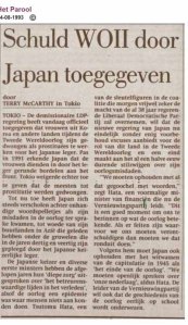 Japan is boos omdat de man lijkt op de Japanse premier Shinzo Abe. De regering noemt dat “onvergeeflijke” en zegt dat als de verdenking klopt het beeld ingrijpende gevolgen zal hebben voor de relatie tussen de twee landen. De titel van het kunstwerk dat in een botanische tuin staat luidt “Eeuwige Boetedoening”. Volgens de eigenaar van de tuin moet de man niet Abe voorstellen. De kunstenaar stelt dat er alleen maar sprake kan zijn van vergeving als Japan boete blijft doen. joop.bnnvara.nl