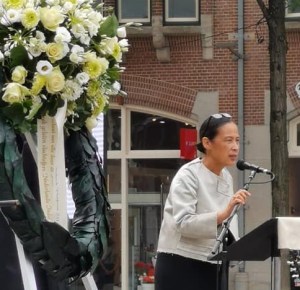 ‘Het monument staat symbool voor de gewone mens en voor de Indische tante die berooid is achtergebleven, maar haar schouders eronder zette en doorging’, vertelde Yvonne in 2013 aan Omroep West. De schrijfster doelt hiermee op de honderdduizenden mensen die na de oorlog met Japan halsoverkop uit Indonesië vluchtten, alles wat ze hadden achterlatend. indebuurt Den Haag