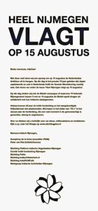 Zien we op 15 augustus uw vlaggen hangen? Niet alleen in Nijmegen, ook in het gehele land?