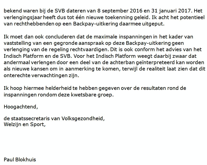- de regering op te roepen in overleg met de Indische gemeenschap op een zo kort mogelijke termijn naar een bevredigende oplossing te komen van de Indische Kwestie en hiervoor brede steun te zoeken bij de andere politieke partijen;